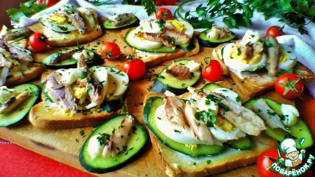 Вот жду сейчас мужа с работы, приготовила ужин, а его все нет. Но и пришли в голову такие бутербродики. Надеюсь, вам понравятся.