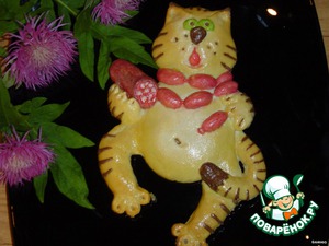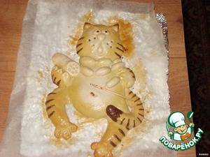 После раскраски еще раз покрываем кота желтком и отправляем в духовку на 10 минут.