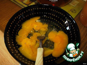 Разбить 4 яйца, добавить сушеную зелень и перемешать.