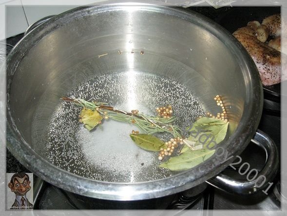 даем закипеть, кладем специи лавровый лист, перец, зерна кориандра, соль. -