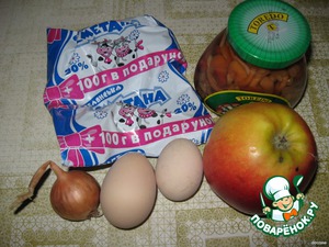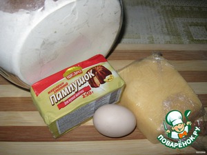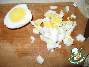 - Яйцо куриное (одно в тесто, 2 отварных в начинку) — 3 шт