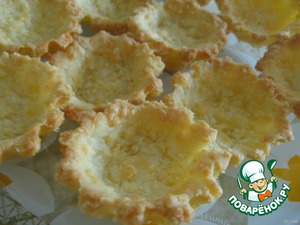 Тесто раскатать, вырежьте кружки и уложите их в формочки. Запекайте в течении 20 минут при температуре 210 градусов. Вот такие должны получиться корзиночки.
