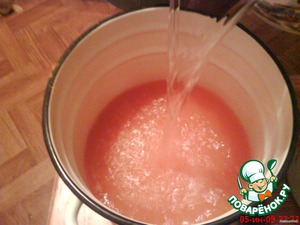 Сварить сироп. В кастрюлю залить 5,5л воды, добавить 1 кг сахара, лимонной кислоты и прокипятить.