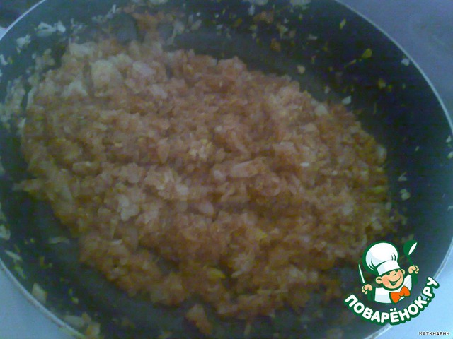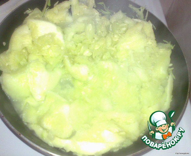 1.2.Внутренность кабачка которую мы вынул, обжариваем на сковороде. -