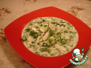 Рецепт «Окрошка на кефире с курицей и шпинатом»: