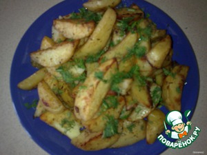 Готовый картофель выложить на блюдо и посыпать с зеленью. Отлично - если приготовите ещё и чесночный соус!!! Это будет вообще класс.