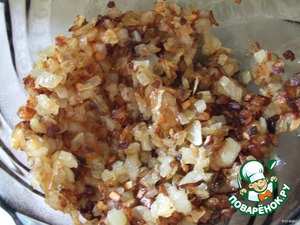 Лук и чеснок очистить, мелко порезать. В сковороде нагреть масло, обжарить лук до золотистого цвета. Добавить чеснок и жарить еще 1 минуту. Переложить в миску.