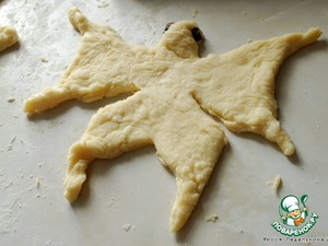 И оставшегося теста вырезаем бабочку, делаем глаза из изюма.