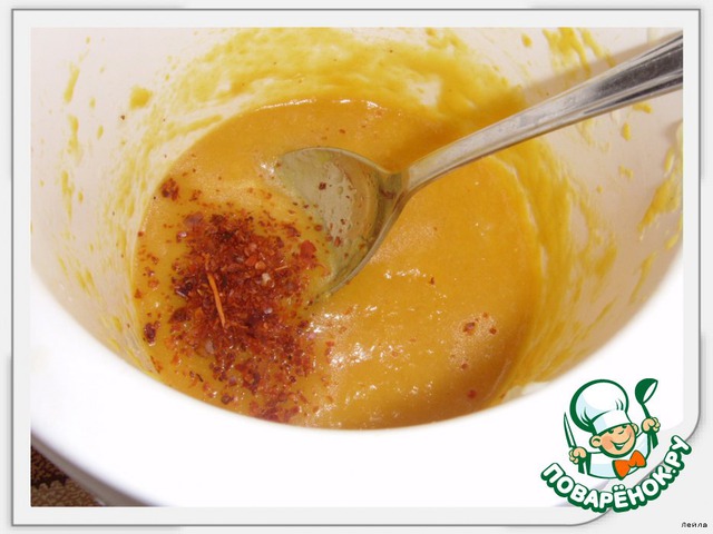 и превратить его в пюре (лучше и быстрее сделать это в фудпроцессоре или блендере, но можно и вилкой размять).