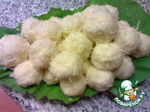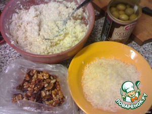 Сформировать шарики, обвалять в сыре. В середину можно положить грецкий орех или оливку.