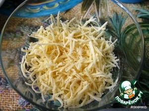 • 1 слой - сыр на мелкой терке, майонез