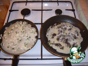 - Грибы (жаренные с луком, для припёка (начинки)) — 400 г