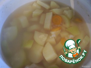 В кипящую подсоленную воду бросаем по очереди картофель, морковь, рис промытый, цветную капусту и кабачок и отвариваем до готовности ,примерно 20 минут, измельчаем в блендере.
