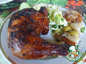 От мангала никуда не отходим, мясо курицы и рыбы очень нежное, вмиг сгорит! Поливаем квасом (у нас домашний, моего приготовления).