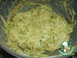 Трём на тёрке очищенный кабачок (я как всегда на своей любимой тёрочке для корейской морковки))), перемешиваем его с сырым куриным яйцом.