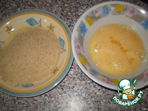 Для панирования нам понадобится яйцо и панировочные сухари. Не надо сыпать а тарелку сразу много сухарей иначе они сильно размокнут от яйца.