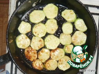 Кабачки порезать кружочками,обжарить с двух сторон.