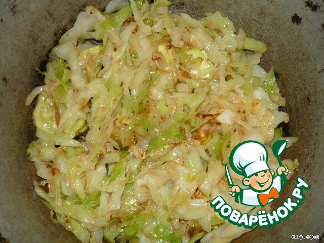 Капусту мелко нашинковать,обжарить.