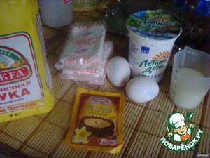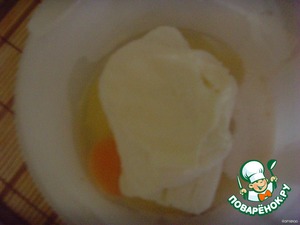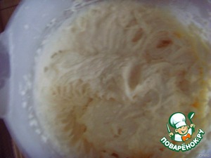 Готовим начинку творог, ванильный сахар, сахар (120 гр), сметану (50 гр. ), 1 яйцо и 1 белок, муку смешать до однородной массы.