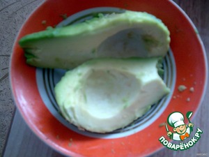 Авокадо разрезать, вынуть косточку, ложкой из кожуры выбрать и тоже размять вилкой.