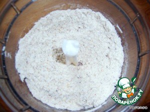 Вот сухие ингредиенты для теста: мука, овсяные хлопья, орехи, 1/2 ч.л. корицы и кончик ножа соли. Несколько орехов оставляем для декора.