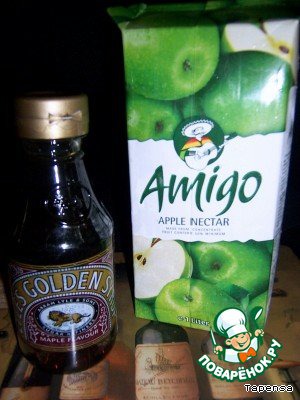 Смешиваем 1/4 стакана яблочного сока и 3 ст.л. кленового сиропа. Так как у меня не было под рукой настоящего сиропа, я на этот раз взяла золотистый сироп со вкусом кленового сиропа. Вливаем эту смесь в блендер и тщательно перемешиваем.