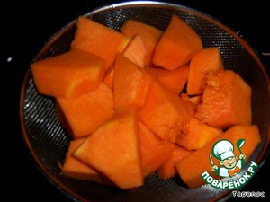 Первым делом готовим тыкву: режем большими кусками и варим на маленьком огне до готовности.
