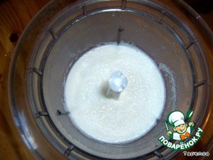 Берем 2 ст.л. порошка соевого молока, добавляем воду, чтобы получился 1 стак. молока. Добавляем 1/4 стак. крахмала и в блендере взбиваем примерно 15 сек.