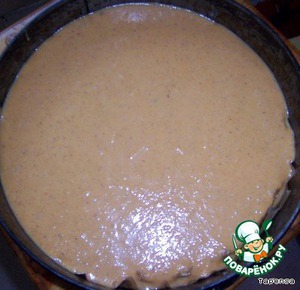 Равномерно распределяем начинку поверх коржа и выпекаем 35 минут.
