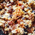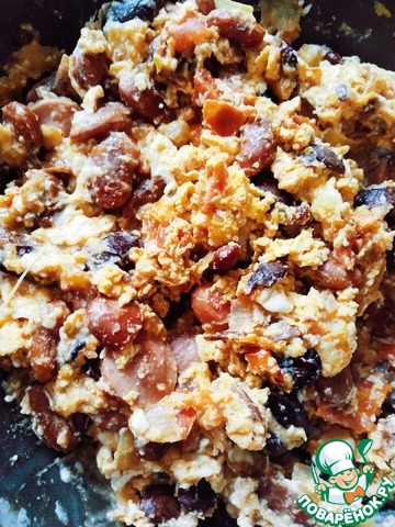 Добавить лобио в сковороду к помидорам. Обжарить.