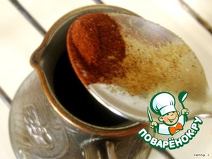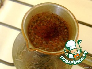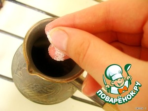 ...чуть присаливаем и прогреваем содержимое турки на среднем огне, встряхивая...