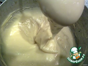Добавляем по одному яйца, каждый раз полностью вымешивая (4 шт., иногда бывает 5, все зависит от размера яиц). Можно и миксером. Но ложкой лучше. Пока тесто не будет тянуться