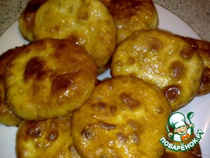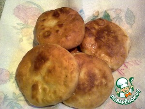 В глубокой сковороде разогреть растительное масло и выкладывать лепешки для обжарки (можно запечь в духовке при 180*, только противень выложить пергаментом и посыпать мукой)