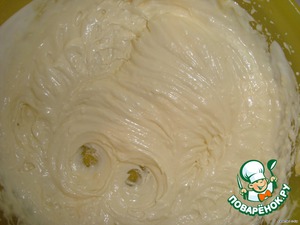 2. Крем-сыр (комнатной температуры, жирность 12 -24 %, не ниже!) растереть с 2 ложками сахарной пудры и ванилью, смешать с яйцом.