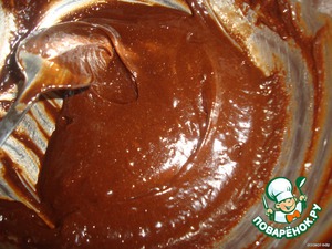 2.В растопленную шоколадно-маслянную смесь добавить сахарную пудру, размешать, затем по чуть-чуть слегка взбитые яйца, все время размешивая.