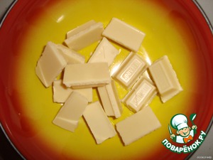 3. В микро или на водяной бане растопить белый шоколад. Слегка остудить и добавить к сливочной смеси. Размешать. Отставить в сторону. (Следить, чтоб случайно никто не сьел))))