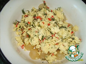 - Сыр полутвердый (домашний, а вообще подойдёт фета, я думаю, может быть адыгейский) — 150 г
