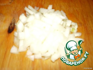 Плавленый сырок нарезаем средними кубиками и кладем в общую массу, перемешиваем.