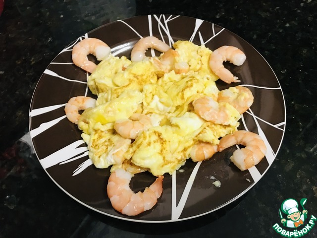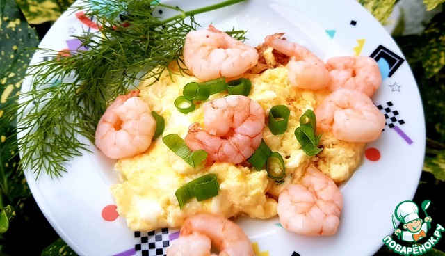 Рецепт «Яичница-болтунья с креветками на завтрак»: