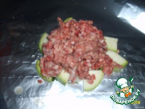 Сверху на них - фарш. И не забываем посолить и поперчить!