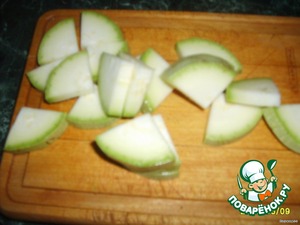 Для начала порежем кабачок. Вот так.
