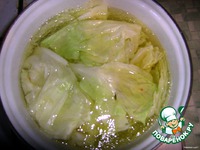 Отвариваем листья капусты до мягкости, я добавила в воду немного приправы с солью. |