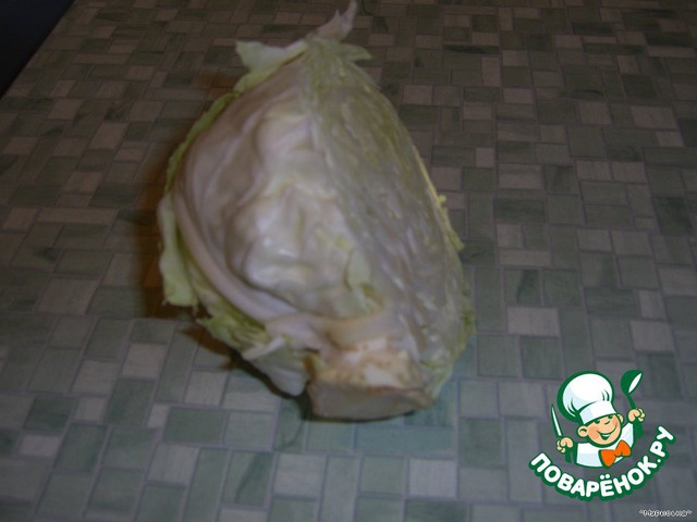 Все очень просто. Сначала разрезаем вилок капусты вдоль на 4 части. И разбираем капустку на листочки. |