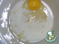 Пока капуста варится, меленько нарезаем зубчик чеснока, добавляем к нему молоко, яйцо,
