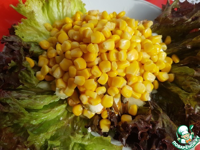 Сверху на салатик выложить кукурузу.