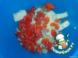 Соединяем в тарелке нашу массу из сыра+ все порезанное+ масло сливочное (размягченное). Хорошо перемешиваем до однородной массы. Пробуем на вкус ( при надобности добавляем соль, перец, чеснок). -