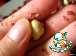 После подсушивания, кожурка у арахиса становится хрупкой и можно легко его очистить, что мы и делаем (осторожно, горячий!:)).