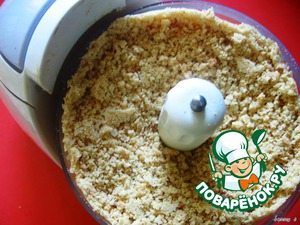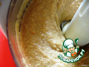 Хорошо измельчаем в процессоре (2-3 минуты). Сначала там образуются комки, а потом всё начнёт превращаться в однородную массу. Нам нужна довольно гладкая консистенция.