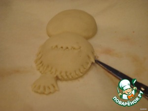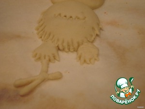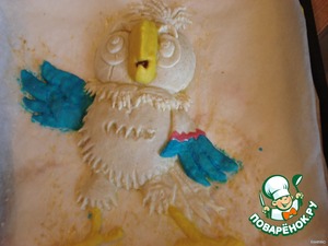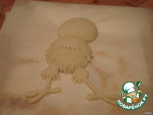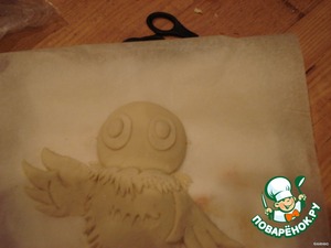 • Особенно мне пришлось повозиться с клювом,он не хотел держать форму.А выход из этого затруднительного положения оказался простым - тесто полежало на воздухе,подсохло немного,и все!Клюв был сделан.