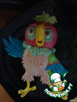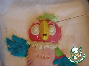 • Попугай испекся,даем ему немного остыть и приступаем к художественным работам.